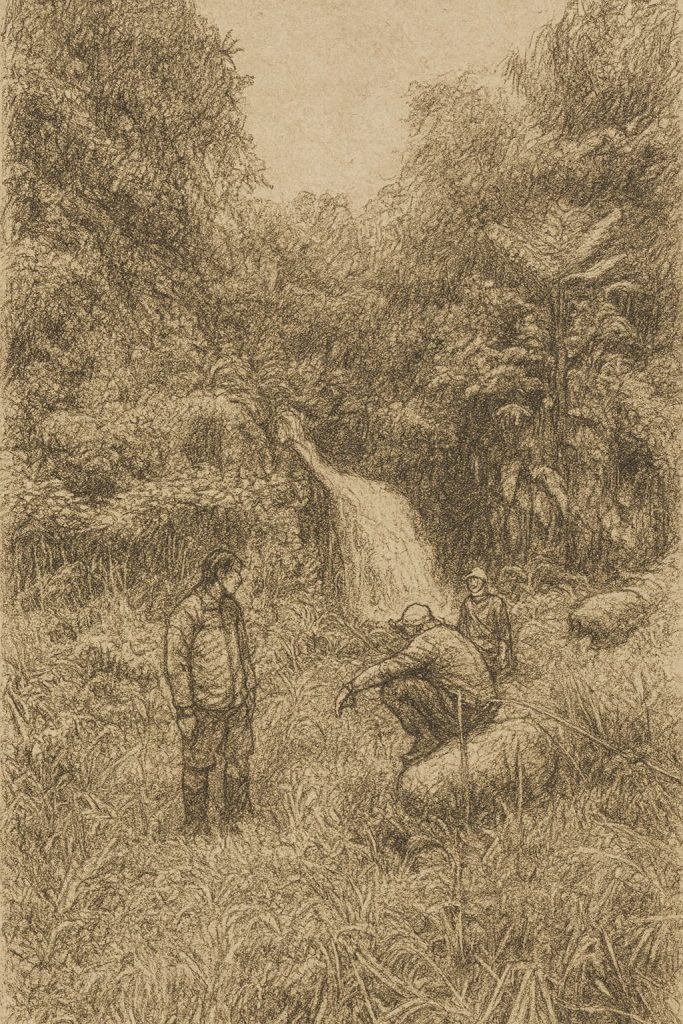Dalam diskusi awal, Ketua LPHD Berkah Tani (Dede Hendra) menyampaikan gambaran mengenai tata kelola kelembagaan dan rencana pelaksanaan survei lokasi. Disepakati bahwa titik awal kunjungan dimulai dari rumah Mang Dede yang berada dekat batas kawasan perhutanan sosial. Pukul 10.54 WIB, saya, Ketua LPHD, dan dua petugas Balai berangkat menuju lokasi dalam satu kendaraan. Setelah tiba, diskusi lanjutan digelar untuk menentukan titik survei. Namun keputusan yang muncul kemudian menimbulkan pertanyaan besar dalam benak saya: lokasi yang dipilih untuk dikunjungi adalah Curug Cisarua.